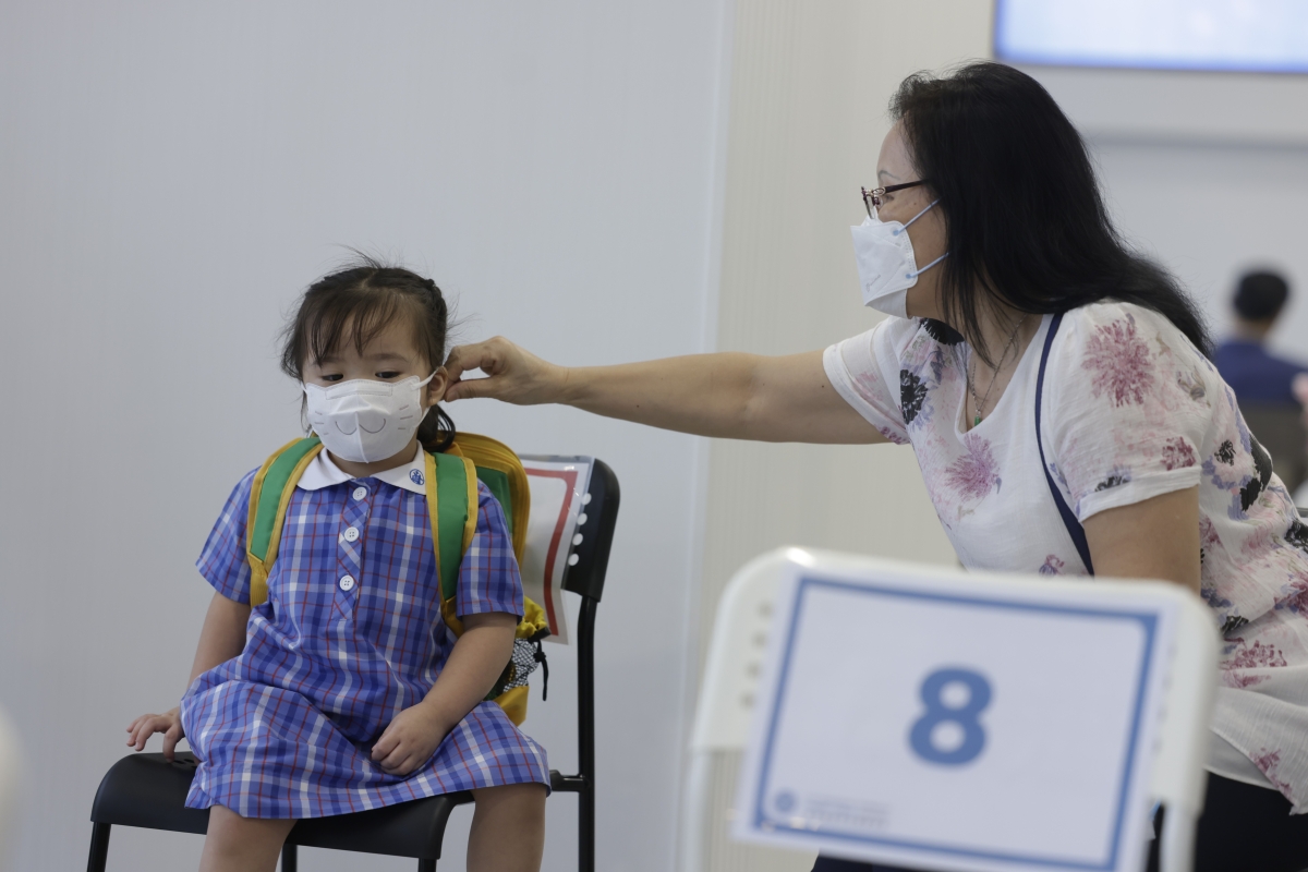 有市民帶領兒童前來接種疫苗。