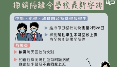 逾千學校呈報3444宗確診 12校個別班級須停課分享到: