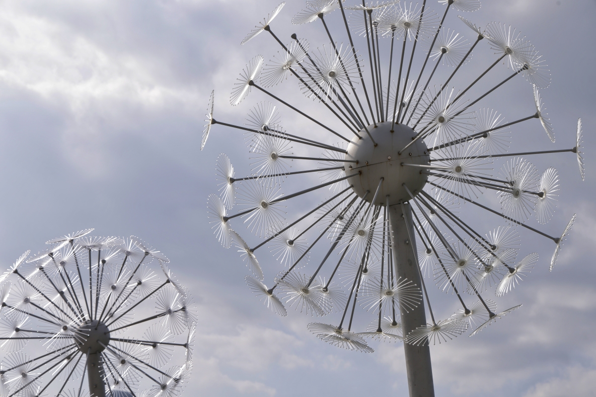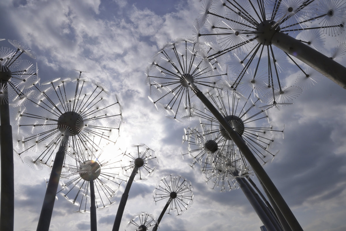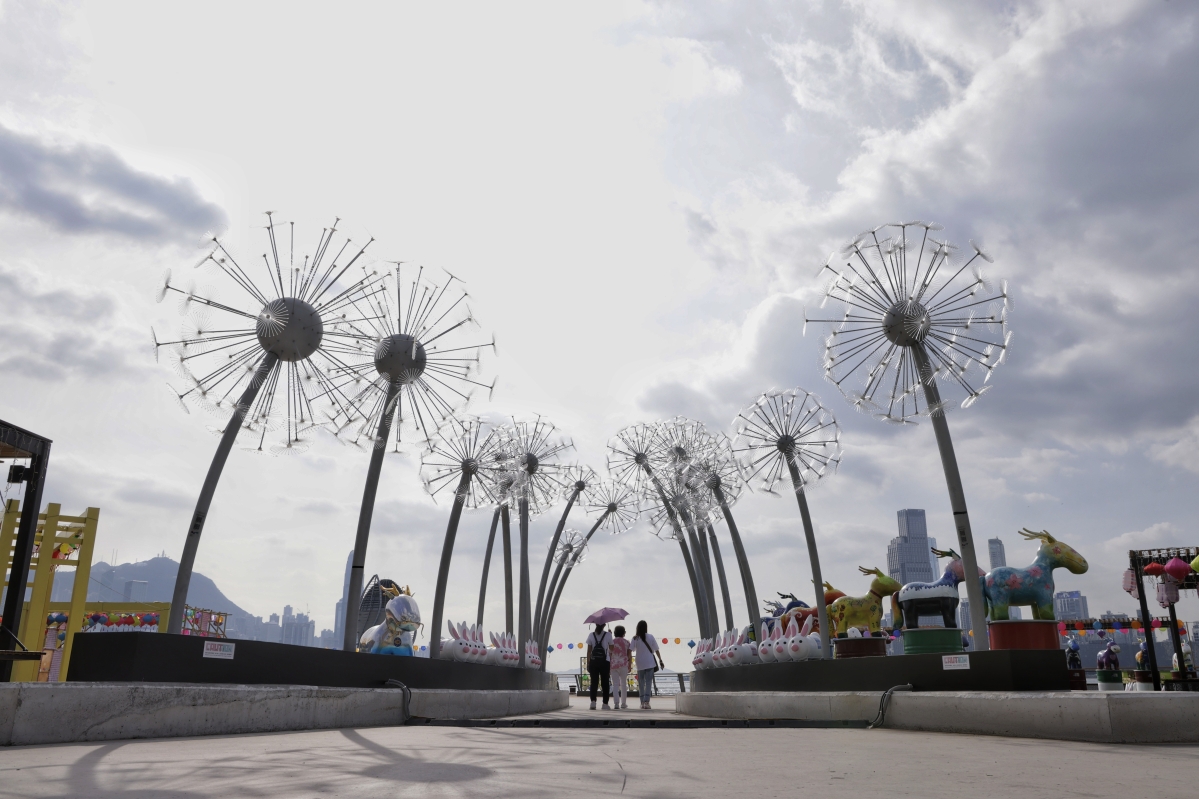 香港新聞網9月6日電(記者 曹文毓)8月初,香港特區政府發展局局長寧漢豪曾表示,維港兩岸海濱全長約73公里,當中25公里海濱長廊已供市民使用,期望今年內延長多約1公里至26公里,并於2028年開通至34公里。特區政府以“先駁通再優化”及“海濱共享空間”為理念,為市民提供海濱體驗。 香港炮台山東岸公園主題區化藝術為魔術,設置特色藝術裝置,將煙花“實體化”,藝術裝置以“花火”為主題,日間造型是蒲公英,夜幕降臨則幻化為煙花爆破的瞬間,別有一番景致。