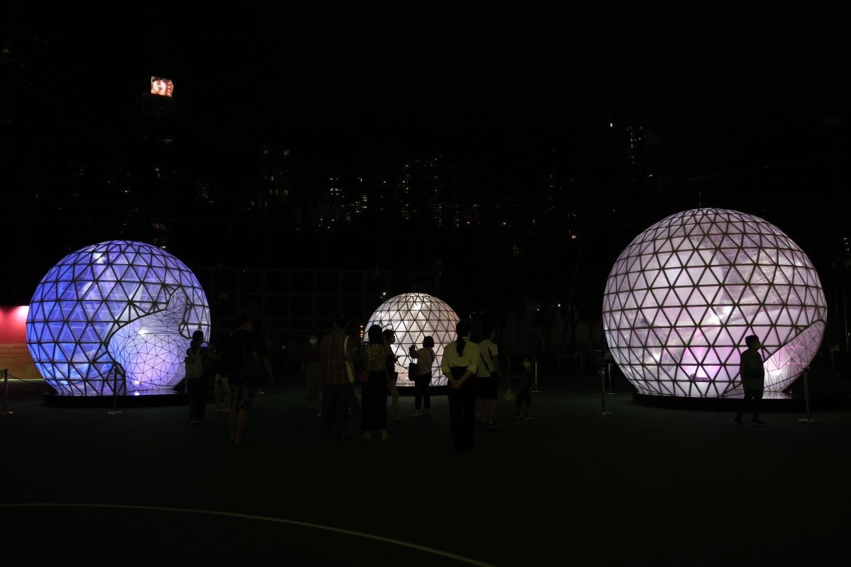 玉兔形狀的綵燈迎中秋。 《圓月故事》由三個月亮球體組成,高度由3米至4.5米,呈現滿月、山巒及兔子,配合燈光顏色及亮度的變化,展示月兔相融的溫馨場景,成爲綵燈展的亮點。燈組由本地建築師施琪珊及其施正建築團隊負責創作、設計及統籌,中國對外演出有限公司聯同自貢海天文化股份有限公司製作,並獲國家文化和旅遊部港澳台辦公室特別支持。該光影展結合四川自貢綵燈的傳統工藝與現代藝術,講述中秋節的古老故事,並促進本港與四川的文化交流。