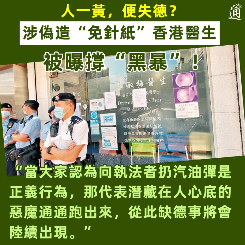 人一黃,便失德?涉偽造“免針紙”香港醫生被曝撐“黑暴”分享到: