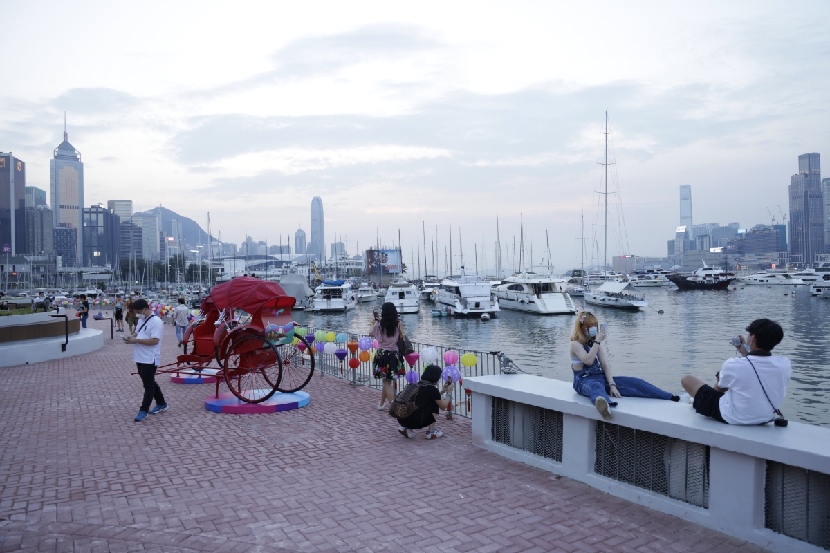 香港新聞網9月9日電 (記者 曹文毓)位於香港維園道銅鑼灣避風塘海濱的活化工程經已竣工。9月9日“迎月”,今年落成的重點項目之一“活力避風塘主題區”正式向市民開放,海濱的燈籠在落日餘暉下爲中秋添上一筆濃墨重彩。