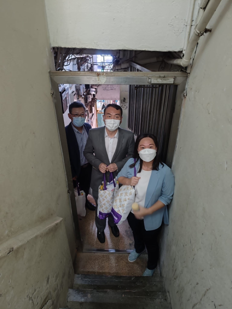 深水埗基層市民眾多,劏房戶、體弱長者在生活上遇到的困難尤其令人關注。雖然9月份的天氣仍然酷熱,唐樓的空間壓迫感和空氣流通差令探訪的一眾人士汗流浹背,要爬上四、五層的樓梯不是易事。但是華潤置地的義工們經過多次深入社區服務的經驗,已練出一身好本領。在探訪的幾個家庭裡面,常穎董事長和劉佩玉區議員利用與老人和家長閒話家常的機會,深入瞭解了基層家庭居住環境、租金、家人工作、孩子就學、老人健康等情況,代表在港中資企業──華潤置地表示了親切慰問。