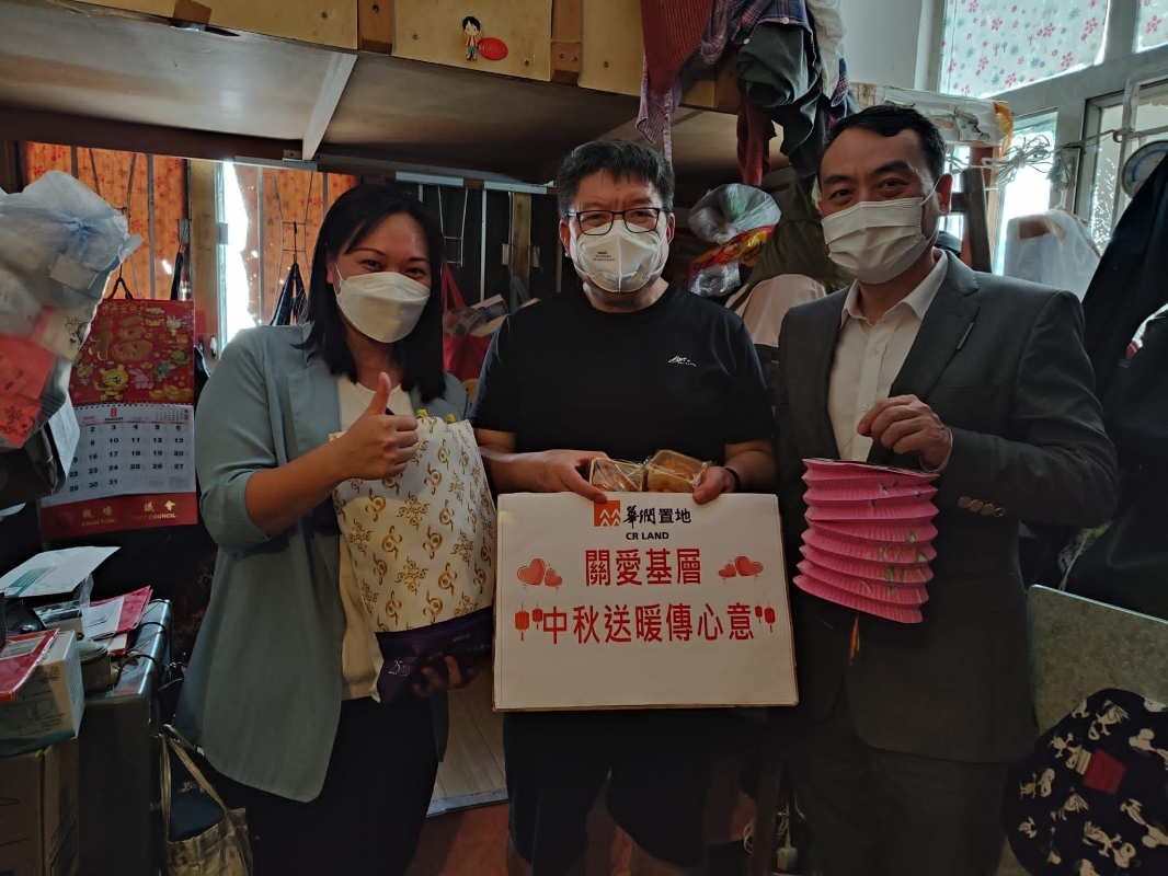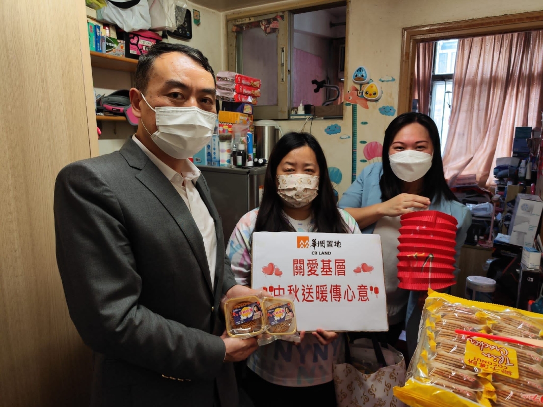 香港新聞網9月10日電 海上生明月,天涯共此時。9月8日中秋節前夕,華潤置地副總裁、華潤置地(海外)有限公司董事長常穎和置地聯誼分會義工一起,夥拍香港深水埗區議員劉佩玉探訪深水埗區基層長者和劏房戶,為健康欠佳的長者和低收入家庭送上月餅和其他傳統節日禮物,傳遞愛心,弘揚正能量。
