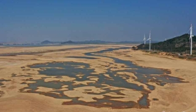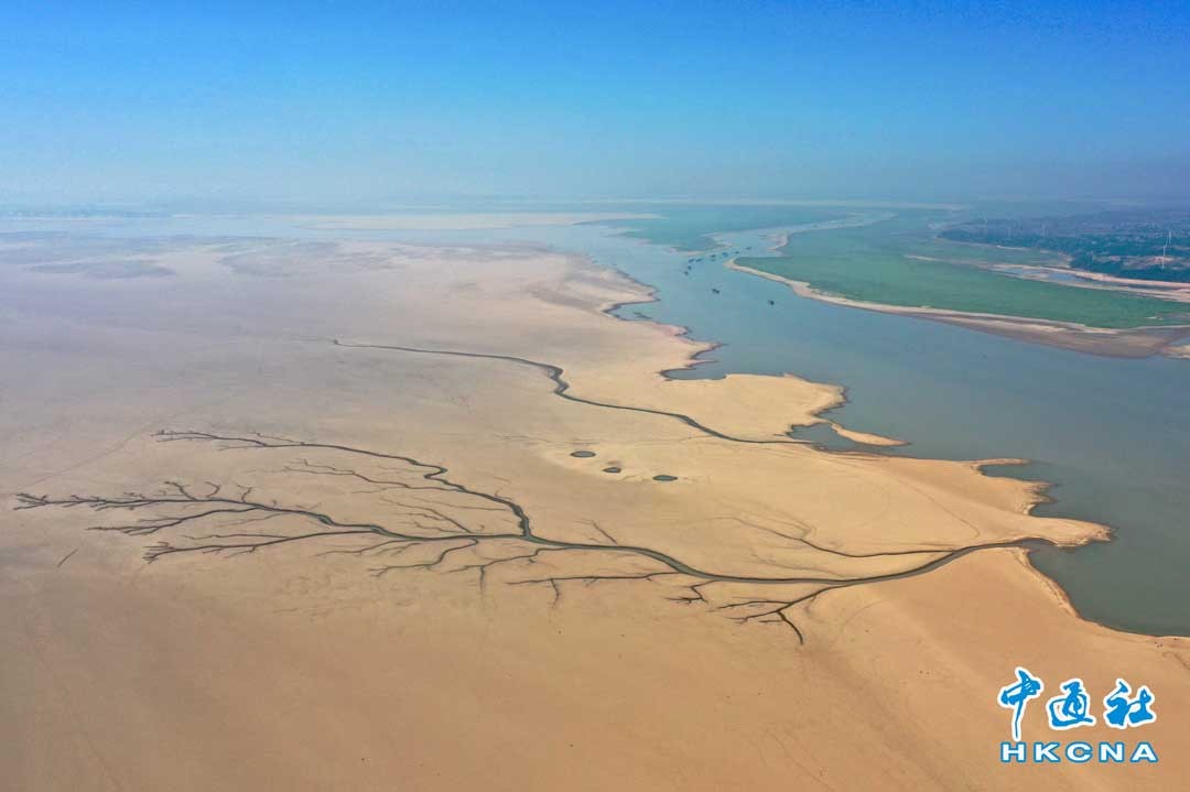 9月6日,在江西省九江市都昌縣鄱陽湖水域,大面積灘塗露出,乾涸的湖床形成一個巨大的“樹形圖”。當日8時,鄱陽湖星子站水位退至7.99米,為1951年有記錄以來歷史同期最低水位,鄱陽湖進入極枯水期。2022年為有記錄以來由枯水位退至極枯水位最快的年份。香港中通社圖片