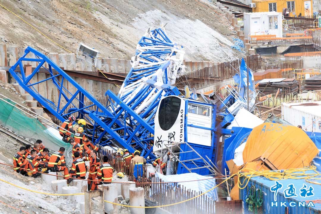 9月7日,香港秀茂坪安達臣道一個建築地盤發生致命意外。一天秤懷疑操作期間塌下,擊中貨櫃辦公室,壓向多名疑走避不及的工人。警方和消防趕往現場緊急開展搜救工作,事故至少造成3死6傷。圖為消防進行搜救工作。香港中通社記者許其皓攝