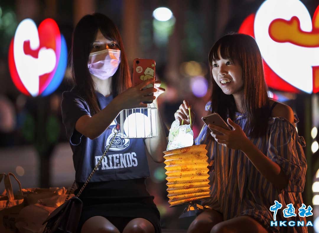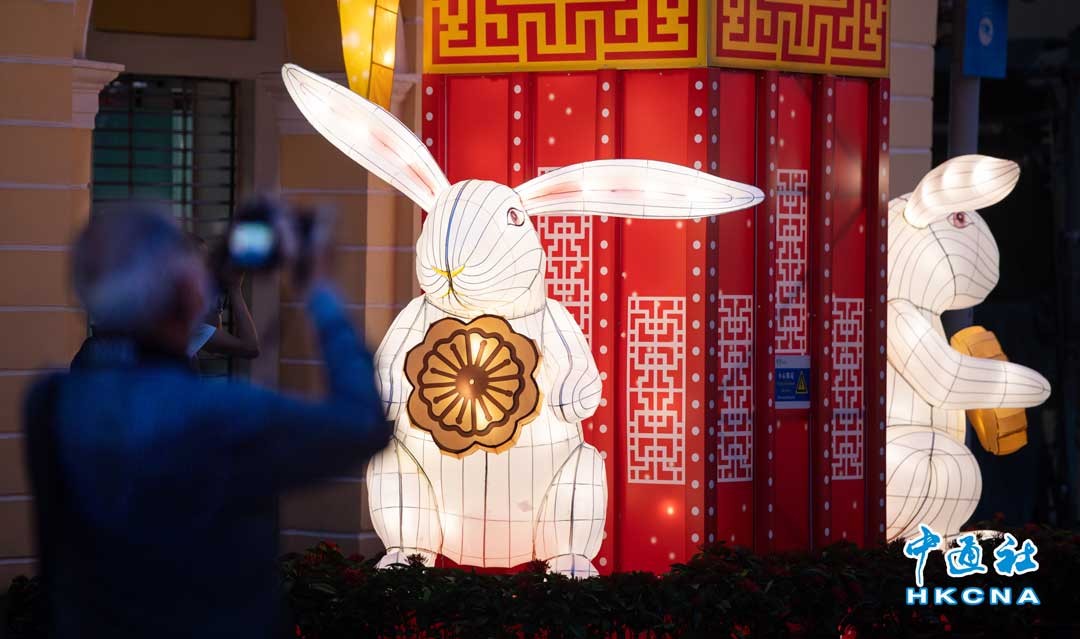 9月10日,市民在澳門議亭前地觀看傳統節日燈飾。當日是中秋節,不少市民及遊客到澳門議事亭前地拍攝傳統節日燈飾。香港中通社圖片