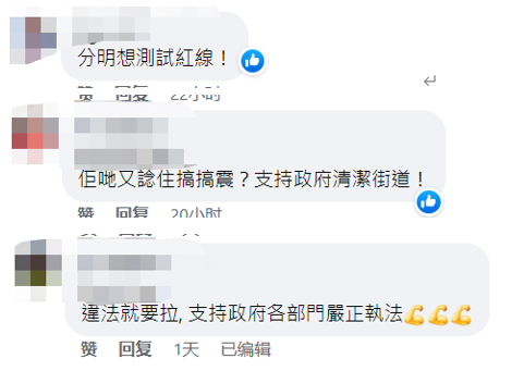 陳寶瑩資料圖 陳寶瑩聲稱社民連只希望表達對新政府首份施政報告的意見,認為政府現以不同的條例向他們作檢控, “不知在他們法律的寶庫,會否還有其他(法律)對付表達意見的自由。” 她還上綱上線地“質疑”稱,若不能在行人專用區展示橫額,是否日後去請願都不可攜帶橫額隨行。 不過,對於社民連“碰瓷”執法人員的行為,大部分香港網友均不買賬!有網友一針見血地指出,社民連此舉“分明想測試紅線”! 不少網友紛紛力挺政府執法,直言“他們(社民連)又想搞事情?支持政府清潔街道!”“違法就要抓,支持政府各部門嚴正執法!”