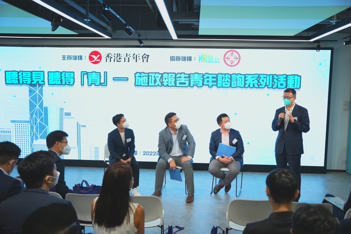 香港區家長教師會聯會榮譽顧問陳志維校長在政策建議環節中指出,現時部份青年對社會存有疏離感,難免會影響青年生涯發展的方向,所以政府需要確立願景,帶領青年走出困局。政府應透過清楚陳述發展青年的政策,增強青年對未來的信心。 其他6位青年人也分別就創業、學業、就業發展等,分享個人體會及提出相關的政策建議。 梁宏正在交流中表示,青年發展藍圖將覆蓋短中長期有關青年發展的看法,民政及青年事務局會持續會見不同的青年人,收集意見,為青年發展藍圖不斷作出更新。 香港立法會議員梁毓偉在交流中表示,特區青年發展藍圖將在今年年底推出,希望年底前可多聽年輕人意見,呼籲大家通過郵件等渠道向政府表達更多意見。
