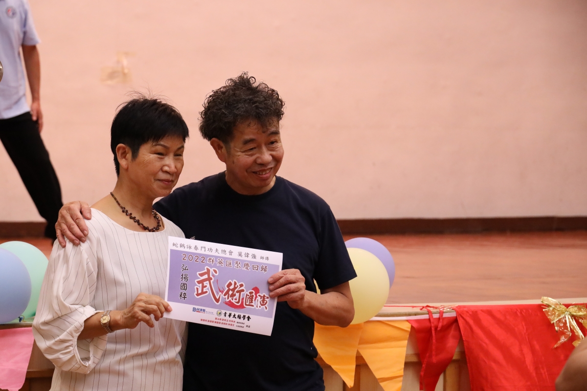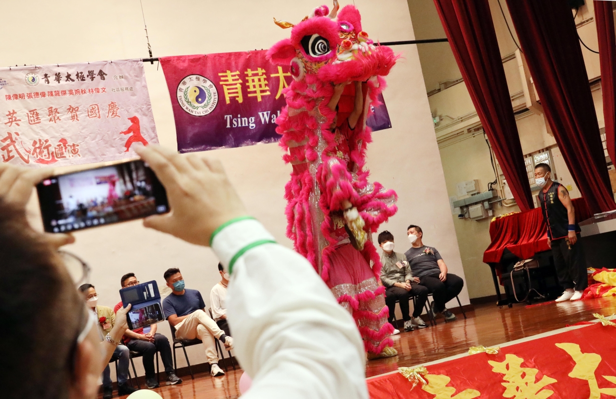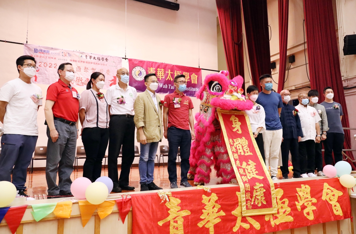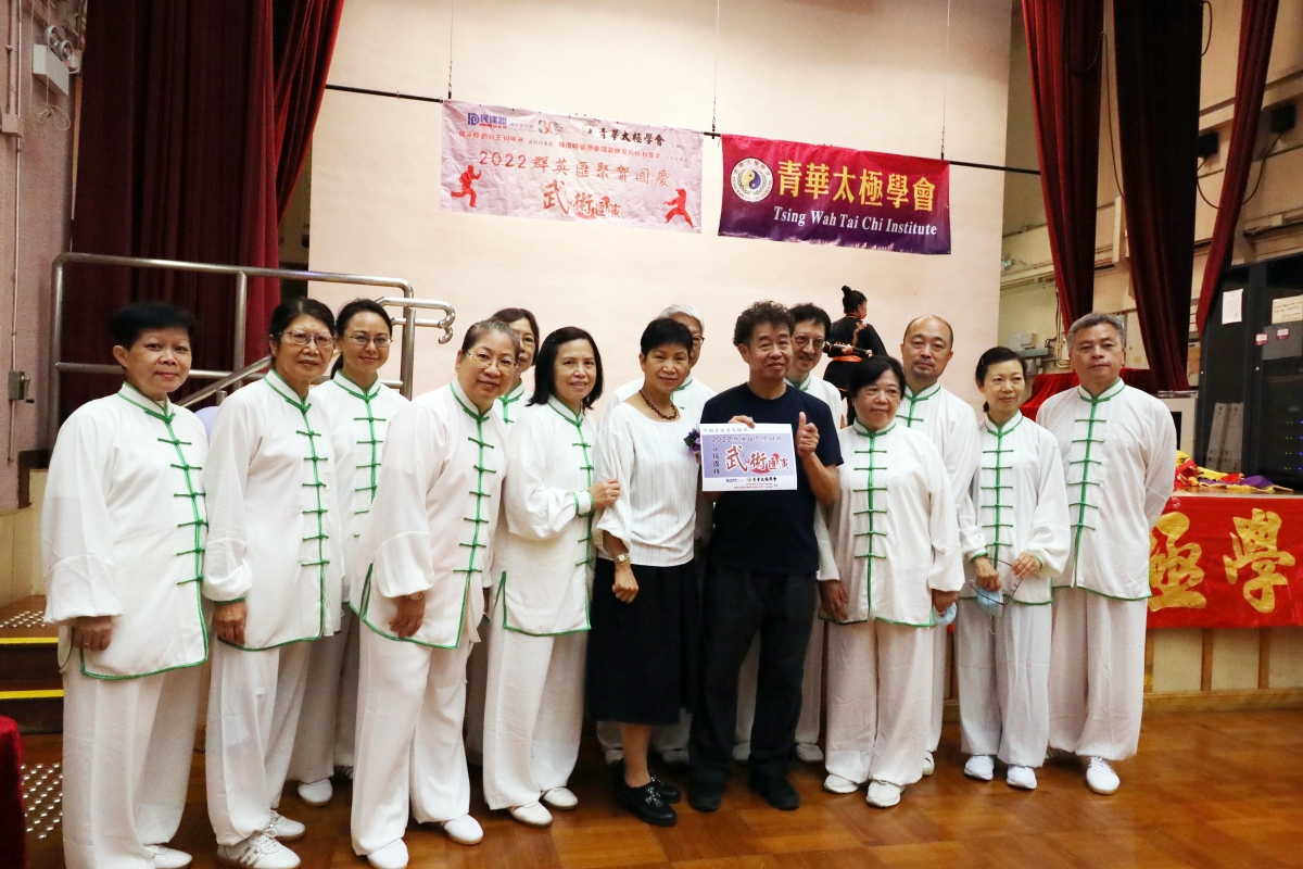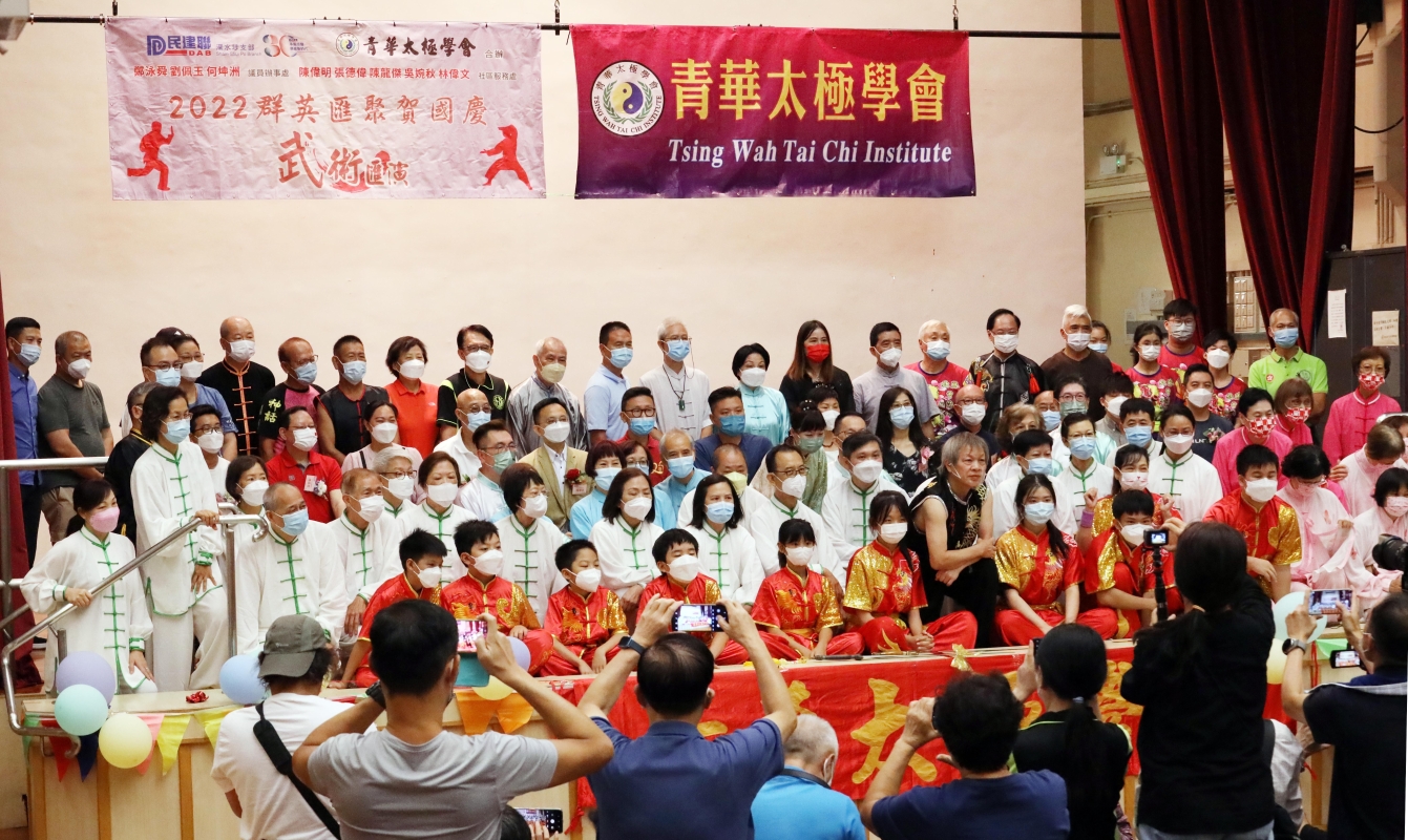 香港新聞網9月25日電(記者洪少葵)由香港青華太極學會、民建聯深水埗支部舉辦的“2022群英匯聚賀國慶活動”9月25日在石硤尾社區會堂熱鬧舉行。近日,香港疫情放緩,國慶節前夕,香港各界紛紛陸續舉辦活動以歡欣喜悅心情迎接國慶節到來。當天,大會邀請了不少各界武術精英登台演練,節目精彩紛呈。香港立法會議員鄭泳舜、區議員劉佩玉、何坤洲及嘉賓陳偉明、張德偉、陳龍傑、吳婉秋、林偉文等獲邀嘉賓出席。青華太極學會於2001年9月成立,創會人歐佩華師傅,學會由一群熱愛健康及中國傳統武術文化(太極拳)人士組成。宗旨為弘揚太極國萃、正視修心健體、啓發團結及友愛精神。總教練歐佩華師傅,除為香港警察中國武術會名譽武術顧問及教練外,亦為多位議員辦事處所舉辦太極拳班教練。康樂及文化事務處太極班教練等。