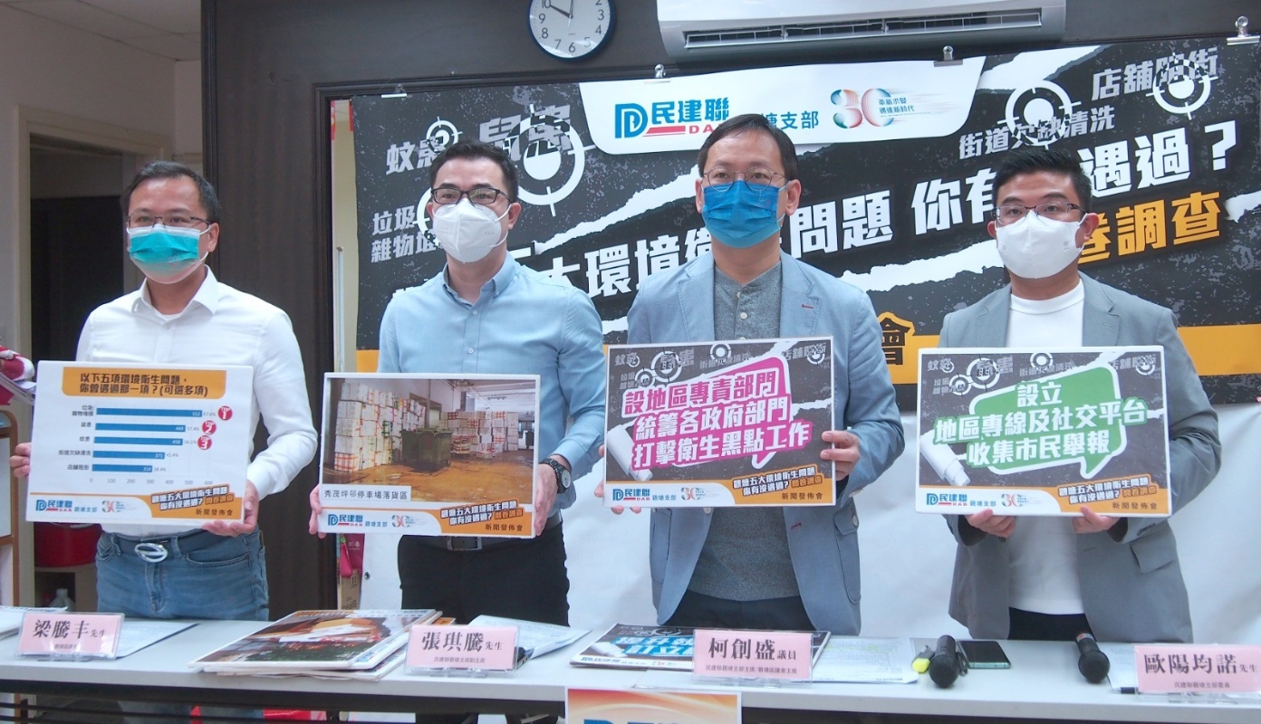調查於8月26日至9月15日期間進行,成功訪問 817 位觀塘居民,環繞著觀塘五大環境衛生問題,分別為垃圾/雜物堆積、鼠患、蚊患、街道欠缺清洗及店舖阻街這五大範疇,希望透過問卷調查了解區內市民就環境衛生問題向政府部門反映後的成效,以及市民主要的投訴途徑等。新聞發佈會由民建聯觀塘支部委員歐陽均諾主持,簡介是次問卷調查,並由梁騰丰區議員匯報調查結果。 調查結果發現,近半受訪市民不滿意觀塘區的環境衛生,其中近兩成受訪者更表示非常不滿意;首三項市民最常遇到的環境衛生問題是垃圾/雜物堆積、鼠患及蚊患。 民建聯觀塘支部主席兼觀塘區議會主席柯創盛建議,特區政府設立專線及社交平台收集市民舉報、設專責部門擔起涉跨部門職權範圍的衛生黑點、訂立績效指標等。 而民建聯觀塘支部張琪騰副主席就觀塘五大環境衛生問題首三位市民最不滿意的環境衛生問題提出多項改善建議,包括建議聯同私人屋苑或機構一同處理鼠患問題。歐陽均諾則就街道欠缺清洗及店舖阻街提出不同改善方案,如建議政府善用科技,加強執法。 柯創盛認為,最重要的是加強跨部門協作及監督、市民的宣傳及教育,才能避免環境衛生問題惡性循環。他說,民建聯觀塘團隊將會成立民間監察隊伍,透過地區網絡及義工,持續跟進衛生黑點的情況,亦會將今次問卷調查的分析及建議向特區政府政務司副司長卓永興提交,並約見特區政府環境及生態局謝展寰局長,在議會上反映意見,冀盼與市民攜手努力,打擊衞生黑點,共同提升市容。 (完) 【編輯:徐嘉儀】
