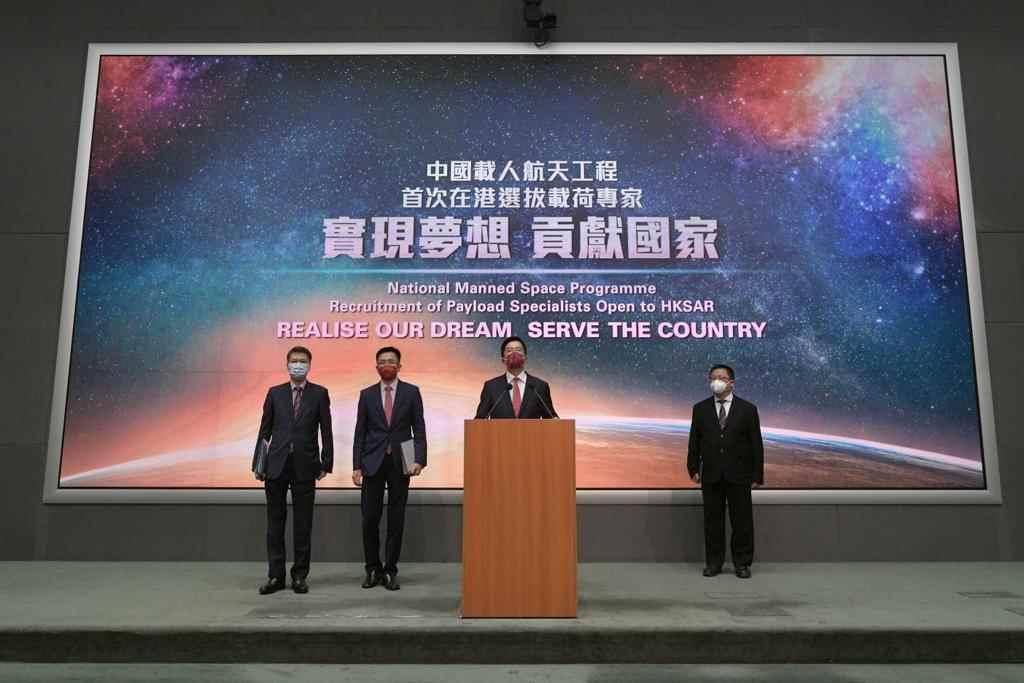 政府召開記者會講述國家宣布首次在香港選拔載荷專家。資料圖 當日,葉成輝出席電視節目時表示,有興趣報名的專家皆是電子工程及機械工程博士學位畢業,如果有人通過選拔,應科院會考慮提供額外津貼。 葉成輝說,香港在航天科技領域的研究不及內地先進,但可在人工智能、無人機數據及太空物料分析方面發展,未來加強與大灣區內地城市合作。他又指,不同機構都需要創科人才,應科院今年流失了約2成人手,希望新一份施政報告會提出吸引人才的措施。(完) 【編輯:凌玉辉】