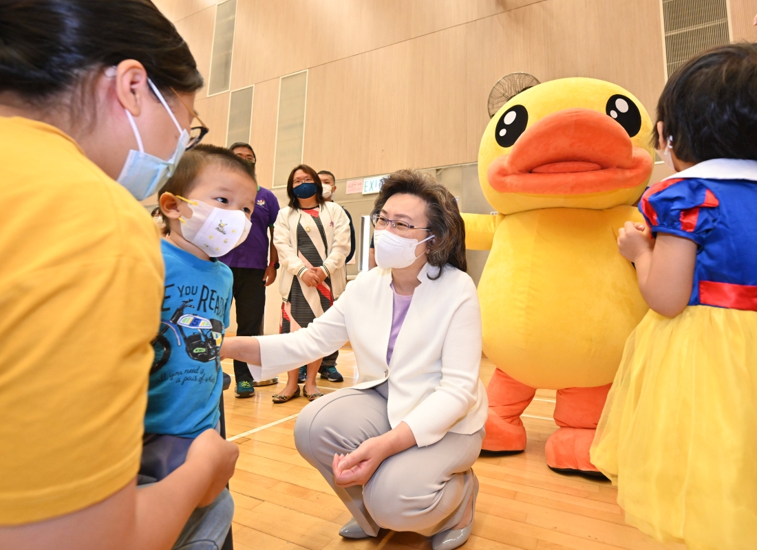 香港新聞網10月22日電 香港特區政府公務員事務局局長楊何蓓茵22日出席一連兩天在紅磡社區會堂舉行的“九龍城區全民新冠疫苗接種日”,鼓勵市民特別是長者和兒童適時接種合適劑次的新冠疫苗。