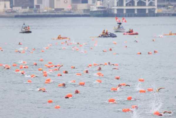 香港中通社圖片 賽事以“全城游出快樂力量”為主題,維持1500個參賽名額,分為競賽組和優悠組。參賽選手由灣仔金紫荊廣場公眾碼頭出發,以尖沙咀星光大道為終點,全程約1公里,沿線有救護人員護航。 本屆賽事可謂一波三折,外界一度擔心比賽因新冠疫情“觸礁”;賽前一日,熱帶低氣壓亦增添變數。不過,比賽當日天公作美,溫度適宜。早上6時許,已陸續有參賽者到場,他們在身上寫上編號、戴上晶片腳環、進行賽前拉伸,與一旁的朋友合影留念。 13歲的女同學抱著來玩的心態參賽,平時都是坐天星小輪過維港,這次游過維港讓她覺得很特殊。 已經第六次參賽的符先生算是一名經驗豐富的“老將”。早在維港泳仍以觀塘為起點時他就曾參賽。對疫情下參賽名額受限,他認為,現場氣氛不如往年,但是能參加比賽已經很開心,今年他仍以安全為第一目標。 香港特區政府文化體育及旅遊局局長楊潤雄、立法會議員霍啟剛等主禮本次活動。早上7時許,一聲槍響,約100名競賽組健兒率先下水,爭先前進,隨後優悠組健兒分批出發。 在終點處,不少市民手持打氣棒,歡呼叫好,等著參賽的朋友歸來;亦有不少市民架好“長槍短炮”自發攝錄賽事。 即將12歲的陳睿浠是本屆最小的參賽者。他從兩歲就開始學習游泳,這次在哥哥的陪同下第一次挑戰賽事。他說,本次參賽人數多過預期,在水裡的時候有人踢到他,影響發揮,明年他會繼續參賽,希望發揮正常水準。 香港旅遊界立法會議員姚柏良抱著推動香港體育文化的心態首次參加賽事。當日他與立法會議員鄭泳舜、容海恩一同出現在比賽現場,入水前對著媒體鏡頭擺出勝利的姿勢。 順利完成賽事後,姚柏良說,雖然參加的是優悠組,但他仍帶著比賽精神應對賽事。他認為,體育盛事可以吸引旅客來港,香港也有舉辦大型賽事的條件,希望將來繼續以運動的形式推動旅遊發展。 據中國香港游泳總會會長王敏超介紹,今年一共約1200名選手到場參賽,與以往出席率相近,約10名參賽者因抽筋等情況不適而獲安排上船。他希望明年可爭取更多名額,甚至恢復至疫情前4000人參賽的水平。 在眾多參賽者中,18歲的港隊男將郭俊希以14分25秒的成績奪得競賽組男子冠軍,21歲的黃靖琳以15分11秒的成績奪得女子冠軍。 隨著疫情已漸趨穩定,香港體育專員楊德強有信心國際賽事會重回香港。(完) 【編輯:凌玉辉】