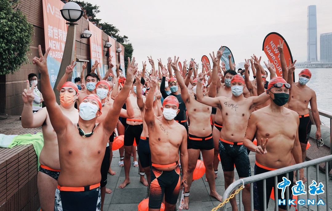 10月23日早晨,香港舉行一年一度的體育盛事“維港渡海泳”,1500名游泳好手齊聚維多利亞港劈波斬浪。今年賽事以“全城游出快樂力量”為主題,分為“競賽組”和“優悠組”兩個組別,參賽泳手由灣仔金紫荊廣場公眾碼頭出發,以尖沙咀星光大道為終點,全程約1公里。圖為泳手準備出發。(香港中通社記者 許其皓攝)