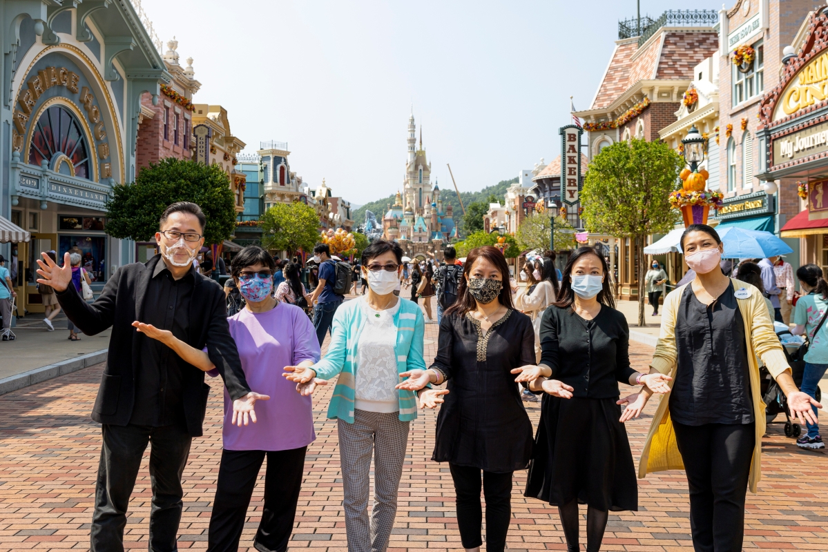 香港中通社圖片 “迪士尼魔法書房”這套約30分鐘的音樂劇,雲集了多個迪士尼故事和人物。賓客會置身其中,與米奇老鼠、高飛以及來自《冰雪奇緣》、友善可愛的雪人Olaf小白走進魔法書,經歷奇妙旅程。三位迪士尼朋友將於表演中穿梭於七個深受世界各地觀眾歡迎的迪士尼故事,包括:《小泰山》、《小魚仙》、《魔髮奇緣》、《勇敢傳說之幻險森林》、《阿拉丁》、《公主與青蛙》及《魔雪奇緣》。 據介紹,劇場視形傳譯員在7月底開始排練及拍攝錄像;其後在9月份踏上舞台做排練,至11月初正式演出,合共用了大約三個多月時間籌備。劇場視形傳譯有別於一般手語傳譯,前者將手語傳譯提昇至一個藝術表演的層次。兩名劇場視形傳譯員站在舞台一旁,為演藝人員的對白和歌唱進行傳譯,還會加入符合角色身份的身體動作、節奏、面部表情和韻律。 為了更好的傳達劇場的效果,選定劇目及遴選劇場視形傳譯員後,各人便就要著手研究歌曲和劇目內容,以及深入了解角色的人物中心思想、神髓、各種微表情和動作。為了更傳神地為表演傳譯,他們更觀看了多齣迪士尼的動畫和電影,了解每個角色的神態。