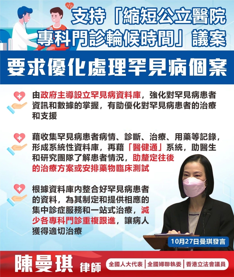 陳曼琪提“公立醫療系統優化處理罕見病個案”三大建議分享到: