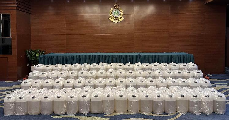 圖為部分檢獲的懷疑液態冰毒。 香港中通社圖片 海關介紹,20日在海運預報資料庫發現一批來自墨西哥,報稱椰子水的貨物,認為有重大嫌疑,由非出產來源地運入一批重量超過4噸椰子水屬非常不尋常。 這批椰子水與其他不同貨物拼裝在同一海運貨櫃,海關鎖定並扣查貨櫃後,發現600箱椰子水貨物藏在貨櫃最深處,其中150箱貨物有可疑。部分紙箱有污跡,表面有不尋常的白色晶狀體,可疑的椰子水經X光檢查,影像跟正常椰子水不同。椰子水包裝的瓶蓋有滲漏,周邊也有白色晶狀體,瓶蓋上更有箭咀符號,相信用來做識別,海關人員扭開瓶蓋後,見到包裝口以透明玻璃膠密封,內有透明液體,人員抽取液體作樣本檢測,經拉曼光譜分析儀及毒品快速測試後,樣本對冰毒呈陽性。 最終,共檢獲1.8噸、市值11億港元液態冰毒,這批貨物原定到港一周後,轉運至澳大利亞。海關相信涉及龐大跨國販毒集團。暫時無人被捕。 海關指,毒販試圖利用香港繁忙物流樞紐魚目混珠,香港今年毒品檢獲量與2021年同期比較上升超過7成,冰毒檢獲量按年升137%。(完) 【編輯:胡雪石】