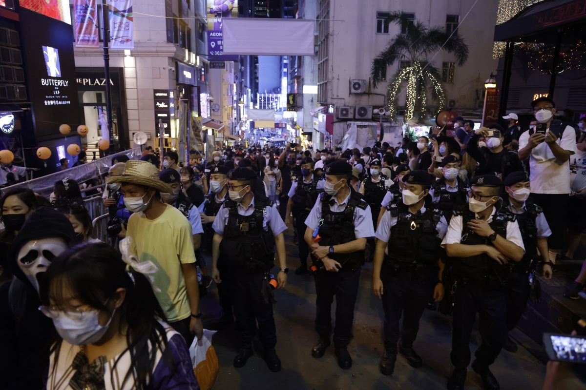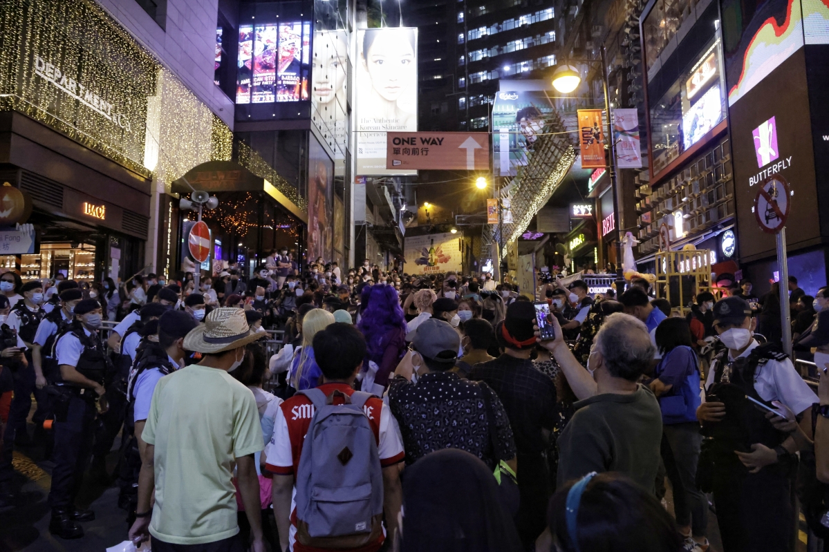 香港警方蘭桂坊實施人流管制 市民有序歡度萬聖節分享到: