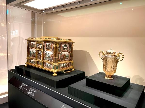 香港中通社圖片 展品包括17世紀巴洛克時期歐洲藝術巨匠安東尼·凡·戴克的經典傑作《瑪利亞・德・塔西斯像》,被稱為他女性肖像畫中的“巔峰之作”;以及昆丁・馬西斯的諷刺畫《收稅者》,以畫中人怪誕造型展現人物的道德敗壞,告誡世人貪婪及吝嗇可招致的嚴重效果等等。 還有不少展品體現出當時中國與歐洲之間的文化藝術交流。其中《庭園花卉紋盤》於清朝乾隆時期景德鎮窯燒造,盤心繪有庭園園景,園中種有竹樹及牡丹;此盤其後出口到歐洲,再於維也納配製銅鍍金飾件,中式瓷器的清雅淡逸與西式金器的雍容華貴在此盤和諧地融為一體。