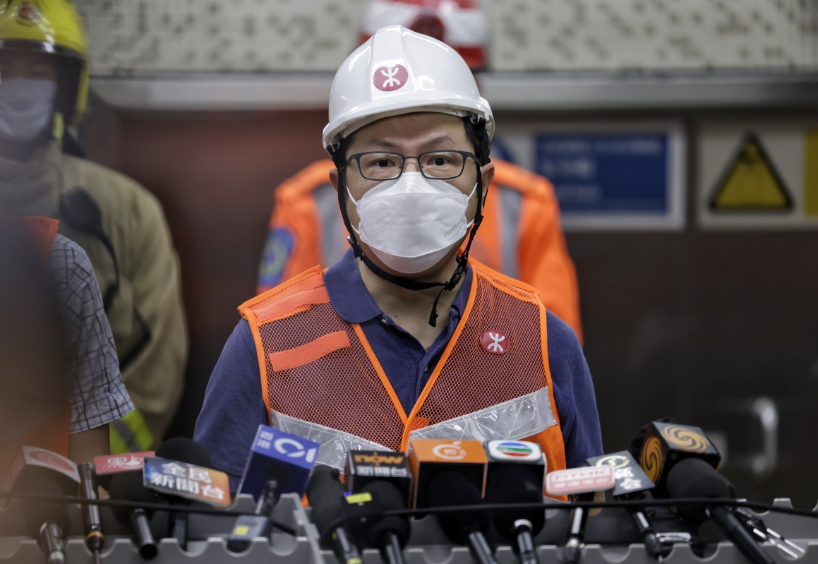 港鐵車務營運及本地鐵路總管黃琨暐見傳媒。 港鐵公司表示,對受影響的乘客表示致歉,指受到事件影響,荃灣線維持佐敦至中環站車次6分鐘一班,荃灣至荔景站8分鐘一班車,港鐵亦為乘客提供免費接駁巴士,以及鼓勵乘客使用其他鐵路線。