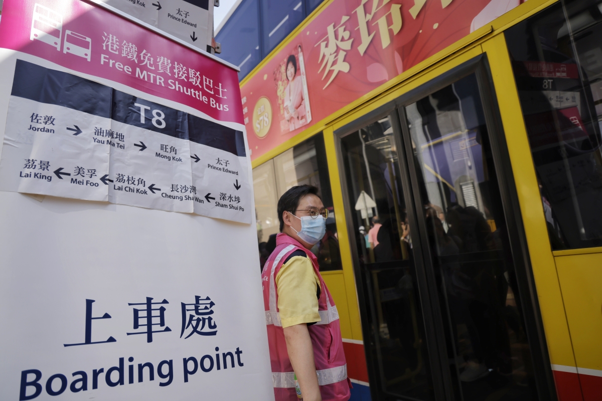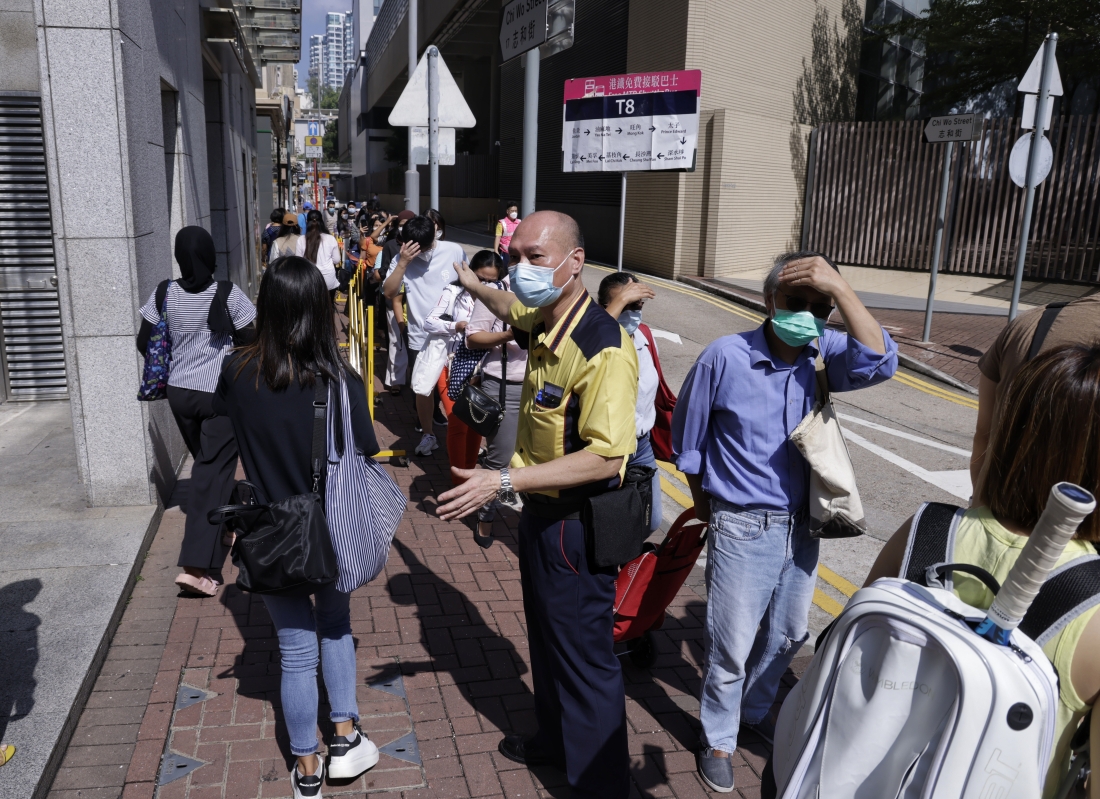 市民大排長龍等待上車。 【編輯:曹文毓】