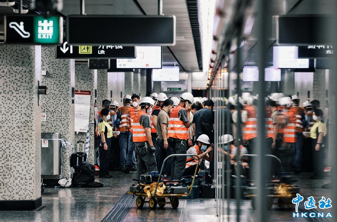 11月13日上午,香港港鐵荃灣綫油麻地站發生車門鬆脫事故,目前荃灣綫服務受阻,來往佐敦站及荔景站的列車服務暫停,油麻地站內正在對列車進行搶修。(香港中通社記者 曹文毓攝)
