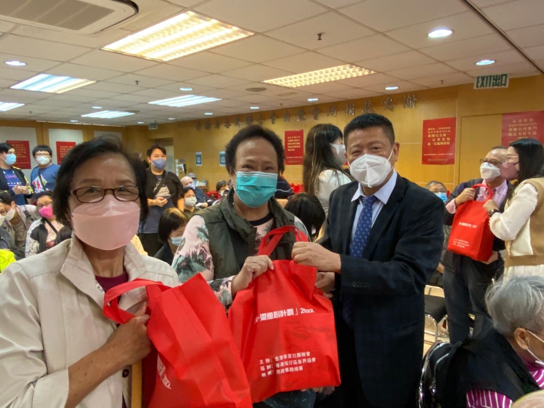 香港寧夏社團聯會會長閻偉寧在致辭時指出,香港弱勢社群的情況牽掛人心,特區政府對基層關愛工作也十分重視,推出“共創明TEEN計劃”,幫助弱勢社群家庭擺脫跨代貧窮。香港寧夏社團聯會支持特區政府的關懷基層政策和措施,啟動禮之後將把“鄉‧港連心計劃”關愛行動落到實處,送福基層,送暖社會。多年來,香港寧夏社團聯會一直把扶助弱勢社群的工作放在重要位置。今年,為慶祝香港回歸祖國25周年暨慶祝國慶73周年,香港寧夏社團聯會積極參與配合民政事務總署的“鄉•港連心計劃”2022系列活動。 他表示,此次社團與地區的活動非常成功,開啟了更加廣泛的合作空間,增進了雙方的了解和聯繫。在今天的活動中香港寧夏社團聯會特別訂購了一批具有寧夏特色的食品及現時防疫物資,對香港基層社區有需要的人士進行探訪送暖,讓基層市民在香港品嘗到寧夏味道,進而了解寧夏,感受香港寧夏社團聯會、香港灣仔區各界協會、寧夏自治區駐港窗口中豪香港有限公司、民政事務總署等社會各界的慰問與關懷,溫暖同行,共建香港和諧社會,共享祖國發展榮光。 灣仔區各界協會副主佘靜怡表示,灣仔各界協會積極團結香港寧夏同鄉社團,支持特區政府依法施政同香港發展,為香港社會穩定、經濟繁榮作出貢獻,香港寧夏社團聯會積極服務社會,推展地區事務,不遺餘力幫助弱勢社群,這份精神值得鼓勵和支持。香港寧夏社團聯會是一支最具熱心、最顯活力和最貼近基層的隊伍,顯示了寧夏人的精誠團結,樂於助人的風範。