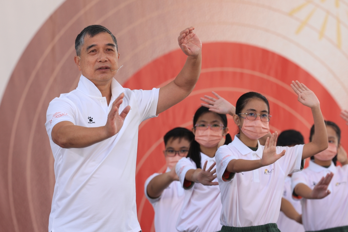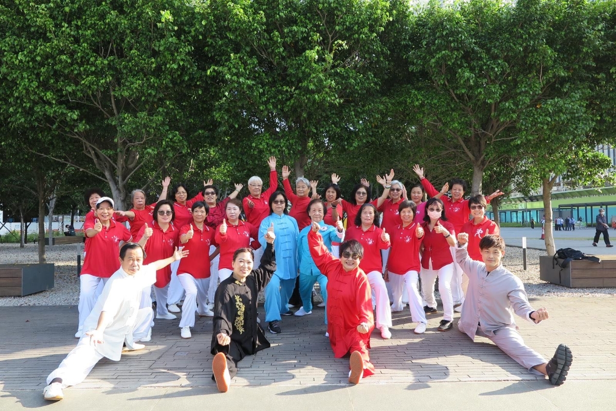 太極國際學院主席林文(左一)輝帶領全場舞出太極四式。