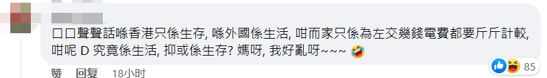 社交媒體截圖 還有移英港人發帖抱怨,因為天氣太冷,自己已經咳嗽了兩個星期,“咳到抽搐、肺痛”,嘗試了各種藥水都無法緩解…… 在香港甚少經歷嚴寒,抵英後卻遭了大罪,一眾移英港人的境遇令不少香港網友倍感唏噓! “開口閉口都是自由,卻去了一個連開暖氣的自由都沒有的地方!”有網友感歎,這些人口口聲聲說在香港只是生存,在國外是生活,但現在只是交電費都要斤斤計較,質疑“(移英)究竟是(為了)生活抑或生存?”