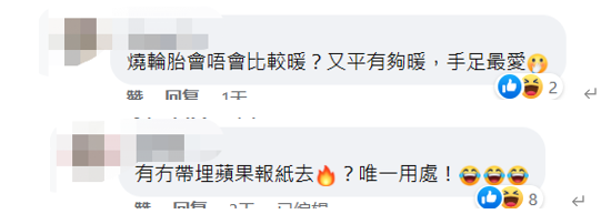 網友評論 也有網友想到部分“黃絲”在香港黑暴時期曾放火打砸,遂建議他們在英國可以燒輪胎、“黃媒”報紙以取暖,“又便宜又夠暖,‘手足’最愛。”