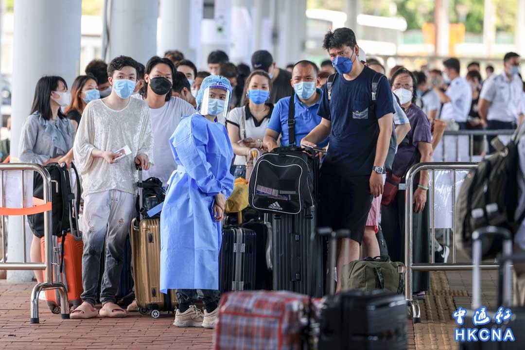 12月13日,香港特區政府公布,12月14日起撤銷前往內地和澳門前“檢測待行”安排,只需持48小時核酸檢測證明即可過關。圖為市民於深圳灣口岸“檢測待行”資料圖。(香港中通社記者 許其皓攝)