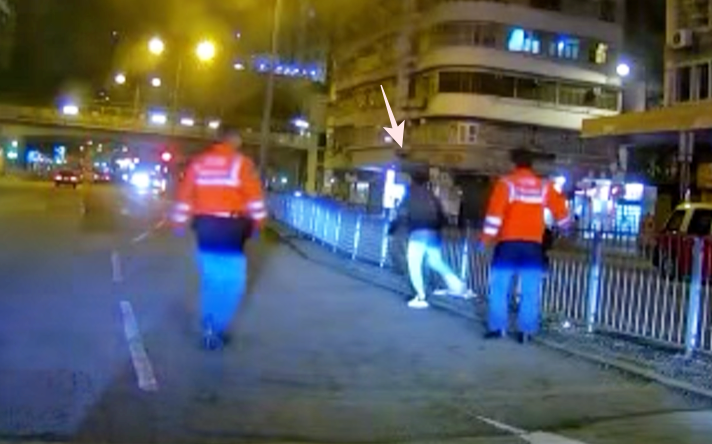 影片截圖。 警方指,事件中無人受傷,交由旺角警區刑事調查隊第一隊接手跟進,經深入調查後,人員3日於牛頭角區拘捕27歲姓戴的涉案男子,他涉嫌刑事毀壞及違反《道路交通條例》(第374章),已獲准保釋候查,須於2月上旬向警方報到。 網上瘋傳一段長約2分35秒的涉事行車紀錄儀影片,可見當日凌晨2時許,私家車行駛期間,突然有一名男子衝出馬路,並跳起撞向私家車車頭,隨後大展演技,作狀受傷滑落並彎腰碎步前行,未幾倒地後連續翻滾近80圈。車上司機大感無奈,只好停車等待。期間對面線有救護車駛經,救護人員見狀下車欲查看男子情況,惟男子隨即彈起返回行人路,消失鏡頭前。