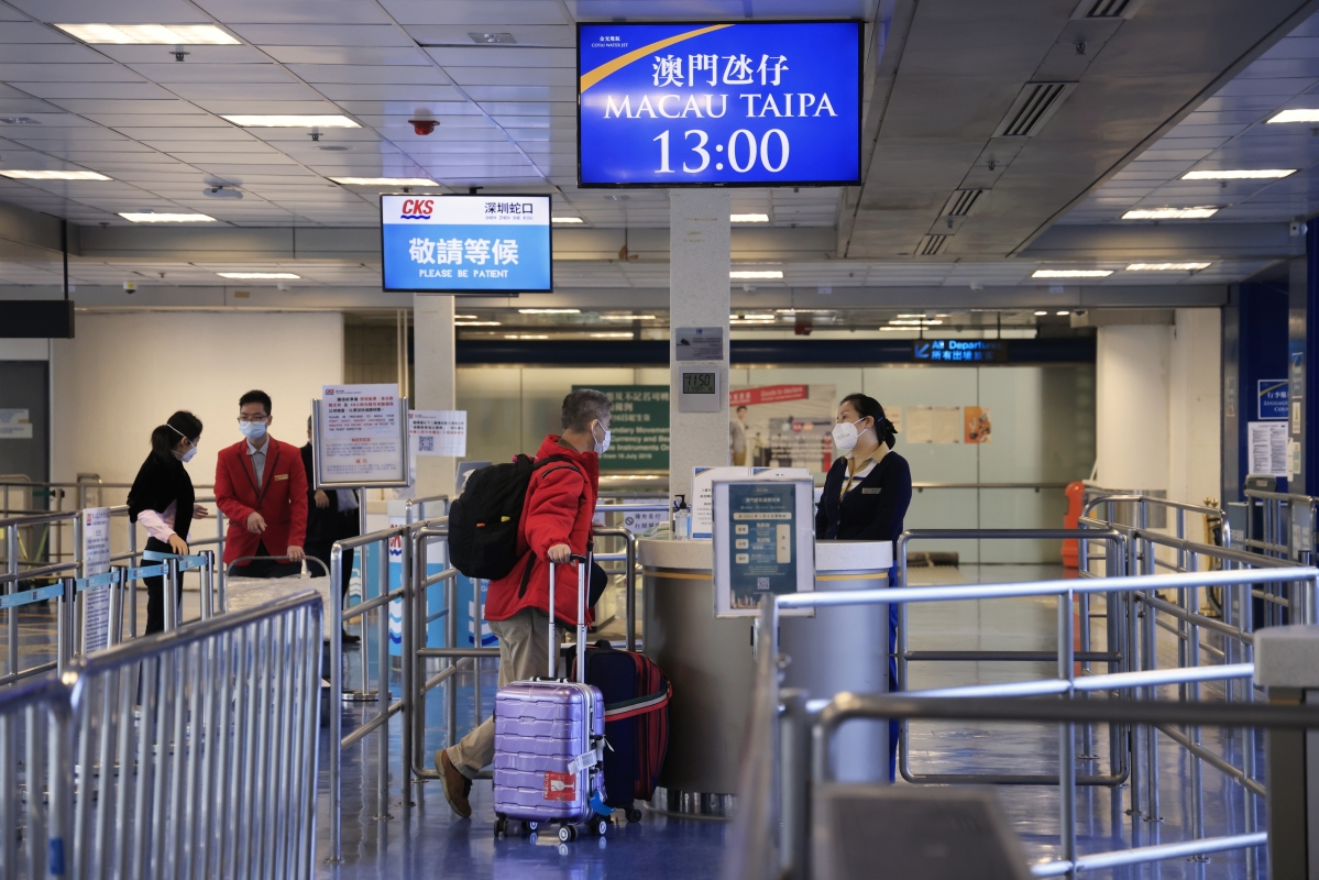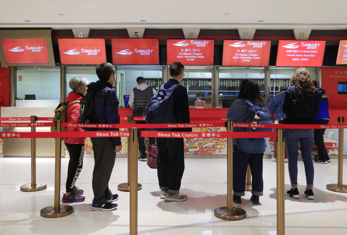 香港市民在港澳碼頭票務處排隊瞭解票務信息