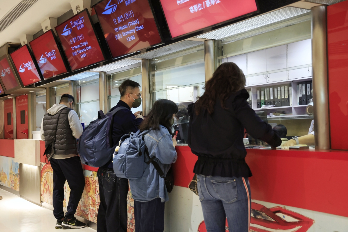 來往澳門航班復航 香港市民排隊諮詢票務信息