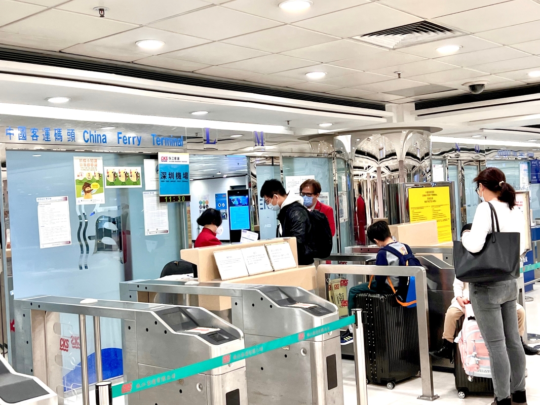 通關首日,記者上午到中港城中國客運碼頭閘口所見,約10名乘客在開船前半小時到場等待,整體乘客不多。上午8時,開船前船員進行拜神儀式,並在船頭掛上“慶祝香港中港城碼頭至碼頭航線盛大啟航”的橫額,時至8時20分,首班船“鎂珠湖”號準時開出。 陳先生與妻子攜一對子女等候入閘,他對記者表示,自己是上海人,最近正好回上海辦事情。從深圳飛到上海選擇海路過關直接到深圳機場更方便。目前感覺通關流程很順暢,心情很激動,因為這三年往返內地及香港每次都隔離,終於不用隔離感覺很開心。