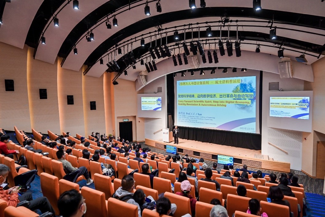 香港萬人科普計劃系列四“院士講科普活動”2023年1月7日在香港科學園高錕會議中心舉辦。此次活動很榮幸地邀請到中國工程院院士、粵港澳大灣區院士聯盟發起人、香港大學榮譽教授陳清泉,中國科學院院士、香港大學城市規劃及設計系講座教授葉嘉安,以及加拿大工程院院士、香港理工大學電子計算學系教授郭嵩為演講嘉賓。本次活動有220多位同學和家長現場參加,會場滿座。同時,中國科學院自動化研究所使用視頻號同步直播,香港,內地逾萬人次觀看。