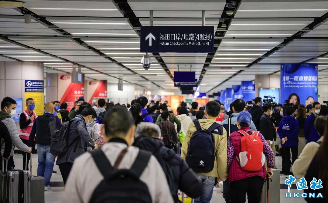 香港1月8日起與內地恢復首階段免檢疫“通關”。香港特區行政長官李家超表示,過關名額符合需求,首日運作順暢,整體達到要求。圖為市民在落馬洲管制站順利過關。(香港中通社記者 曹文毓攝)
