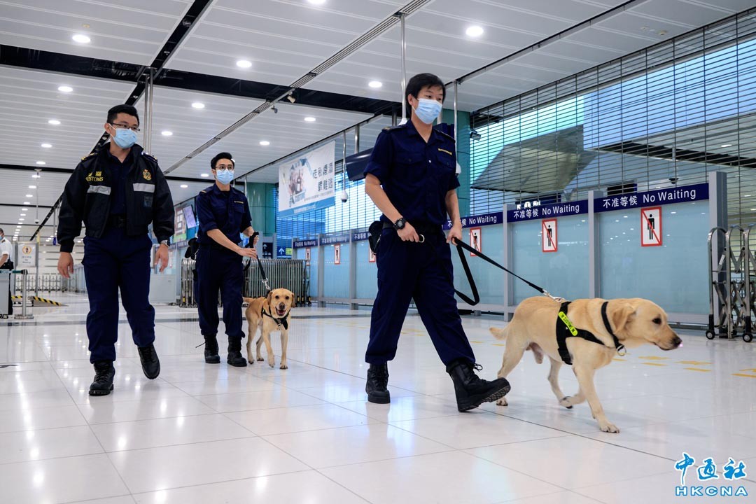 香港海關1月5日於落馬洲支線口岸進行演練,以確保香港與內地通關初期口岸運作暢順。(香港中通社記者 許其皓攝)
