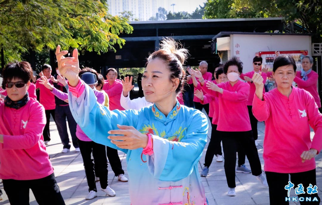 1月6日,在香港美孚公園裡,麥瑞芳師傅帯領“開心太極坊”成員練習太極。麥瑞芳師傅曾參加多項香港及海外武術公開賽,從初嘗奪冠之美妙,到致力推廣宣傳武術文化和太極拳運動,她都不遺餘力。麥瑞芳於2018年創辦“開心太極坊”,立志傳承太極,望助人為養身健身。(香港中通社記者 洪少葵攝)