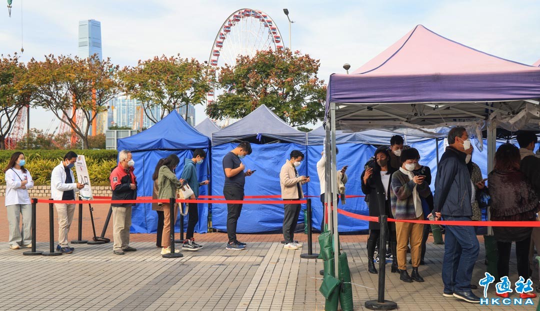 1月7日,正值周末,香港大批市民前往中環愛丁堡廣場的檢測站接受核酸檢測。香港與內地將於1月8日實施首階段通關,市民過關前往內地時要攜帶預約通關證明、48小時內核酸檢測證明及身份證明。(香港中通社記者 許其皓攝)
