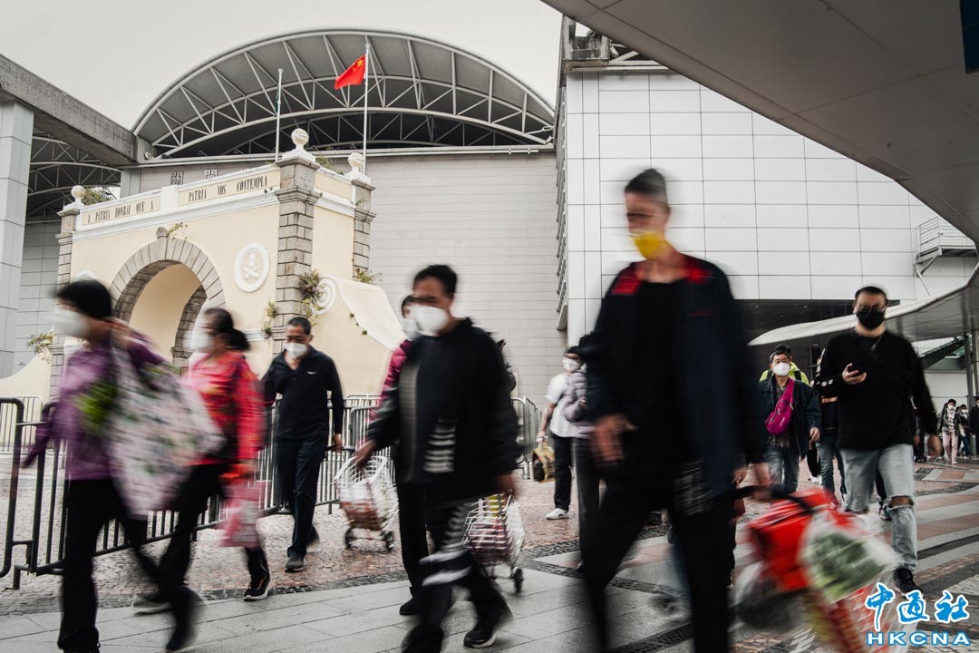 1月8日,珠澳免核檢通關,早上時分澳門關閘口岸人頭湧湧,出入境方向珠澳免核檢通關首日,澳門關閘人如潮。當日,珠澳免核檢通關,早上時分澳門關閘口岸人頭湧湧,出入境方向人流都明顯增加,由於前往內地需用“中國海關碼”,出境風雨走廊有不少市民停留“轉碼”,現場有警員維持秩序,為出境人士提供協助。轉碼區亦有不少人聚集,向警員及保安求助,查詢轉碼操作,整體秩序良好。香港中通社圖片
