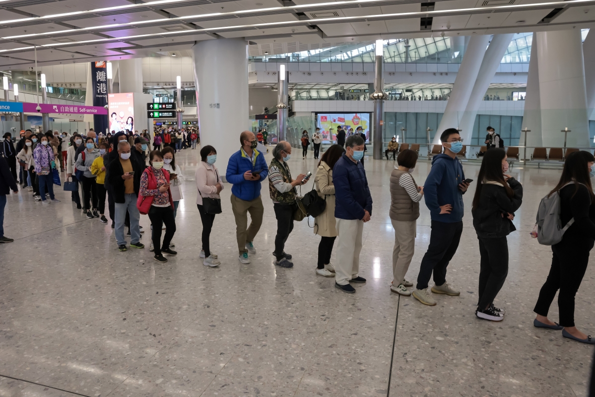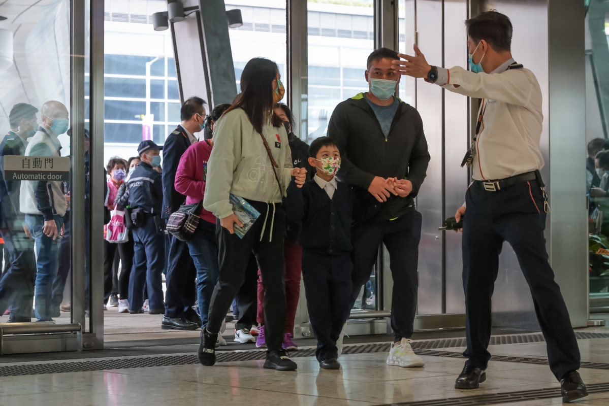 大批香港市民於車票開售前,在高鐵西九龍站外排隊等候。