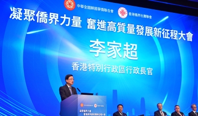 香港新聞網1月15日電 香港特區行政長官李家超15日早上在香港大球場主持了港島區百萬行的起步禮,李家超的夫人林麗嬋以公益金會長身分一同出席。