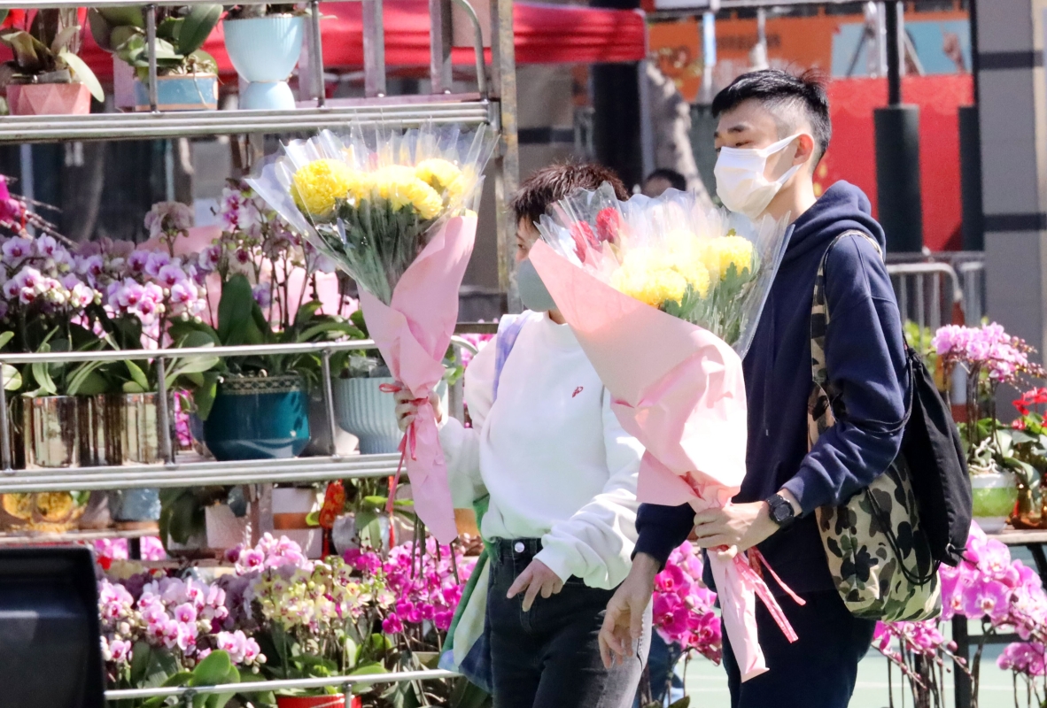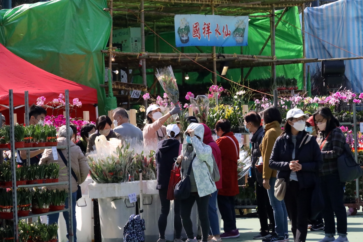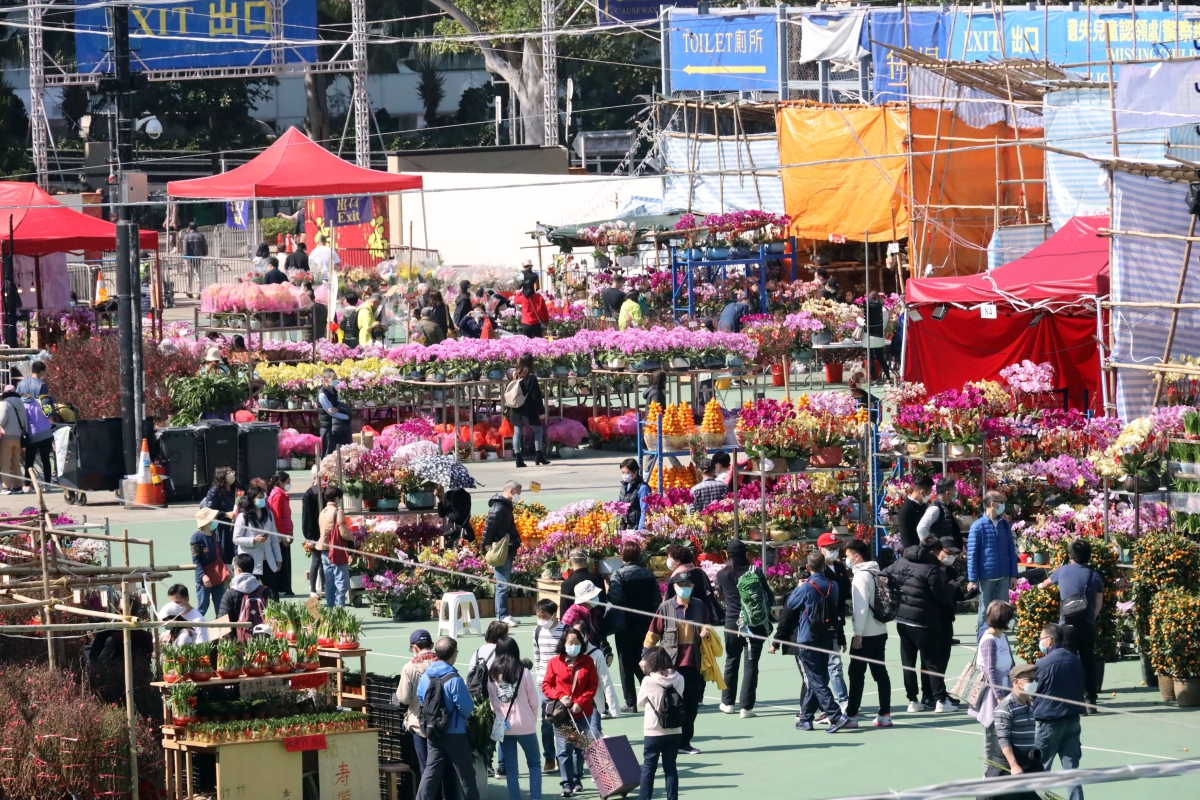 香港市民到維園年宵市場選購鮮花歡度農曆新年。