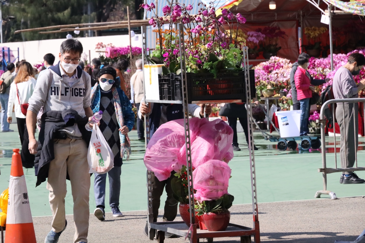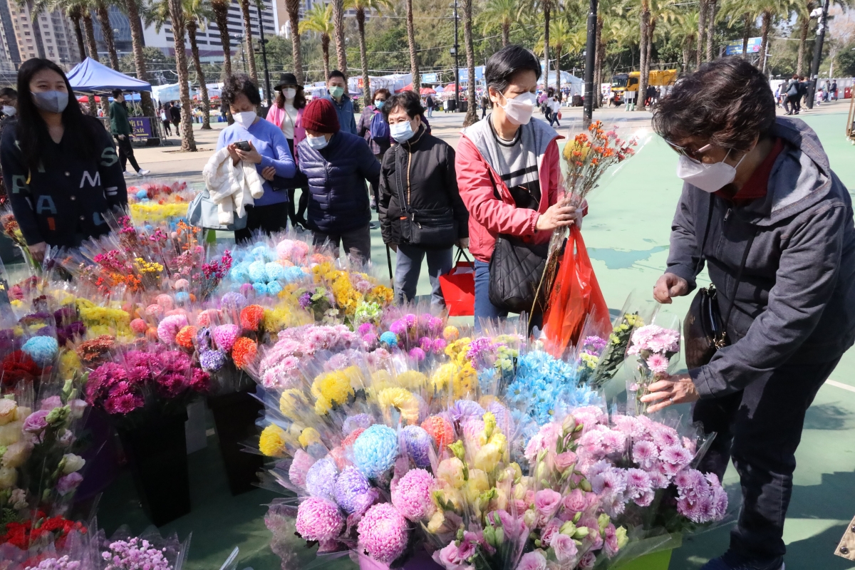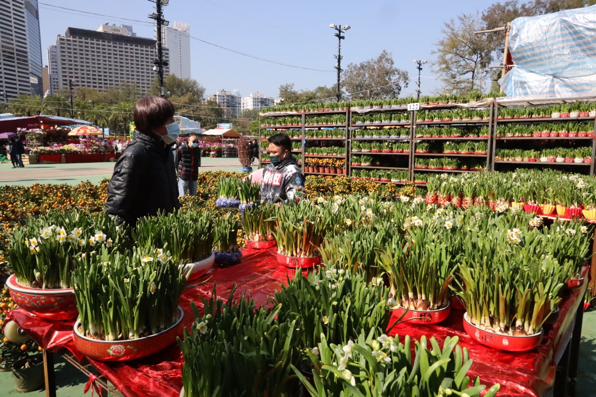 香港新聞網1月19日電 (記者洪少葵) 19日,香港天氣晴朗,不少市民到銅鑼灣維園年宵市場選購鮮花歡度農曆新年。隨著疫情放緩,熱鬧非凡的年宵市場回歸港九新界,今年全港設有15個年宵市場,由1月16日至1月22日一連7天舉行。其中規模最大的維多利亞公園年宵市場設175個攤位,連日來,吸引了不少市民前來買年花。 年宵花市有桃花、水仙花、蘭花、富貴竹、五代同堂、發財樹等傳統年花,應有盡有,琳瑯滿目。現場還有特別的品種花卉“銀柳”,寓意是“有銀有樓”好兆頭。有市民表示,選購鮮花應節是希望疫情下能多添節日氣氛,家中看見花開會喜慶開心。也有市民說,逛花市始終是香港過新年傳統,沒有買花也感受一下花市熱鬧氣氛。 維多利亞公園年宵市場,簡稱維園年宵市場,是一個由香港康樂及文化事務署統籌的花市,也是一個一年一度的墟市。維園年宵市場是全香港最大的年宵市場,每年有政府官員、社團各界知名人士和藝人到訪,也是香港傳媒報道春節新聞必有的環節。