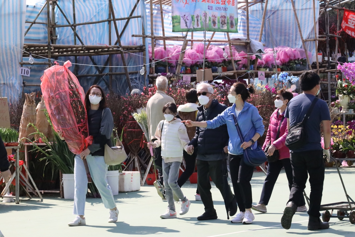 香港市民一家大小到維園選購鮮花歡度農曆新年。