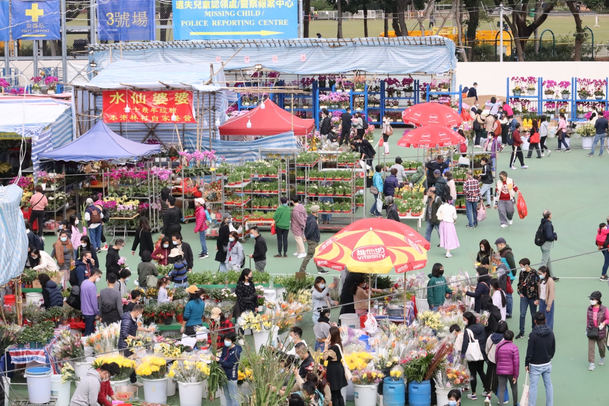 維園的年宵花市人流絡繹不絕。