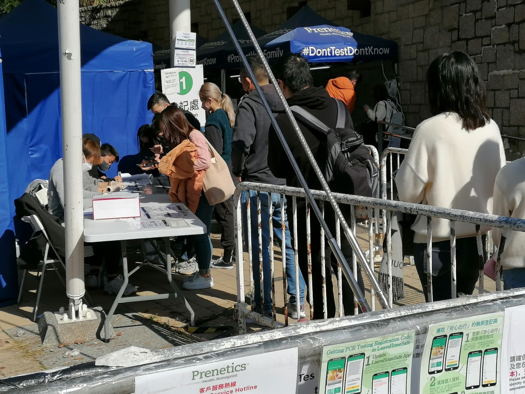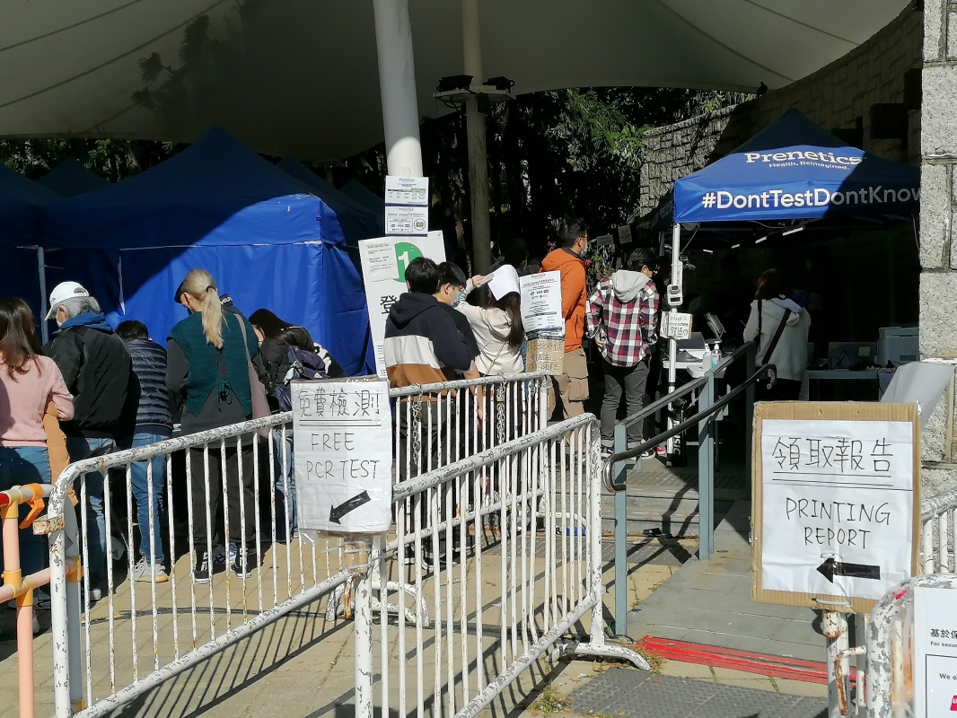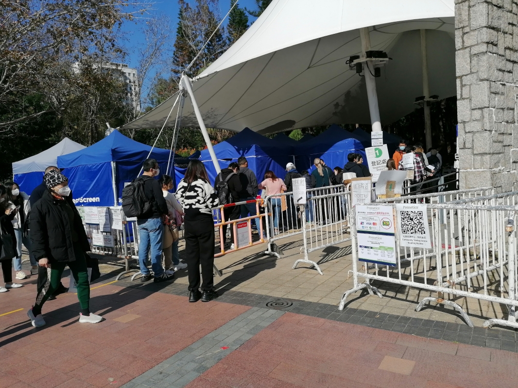 香港市民在維園排隊舉行核酸檢測。