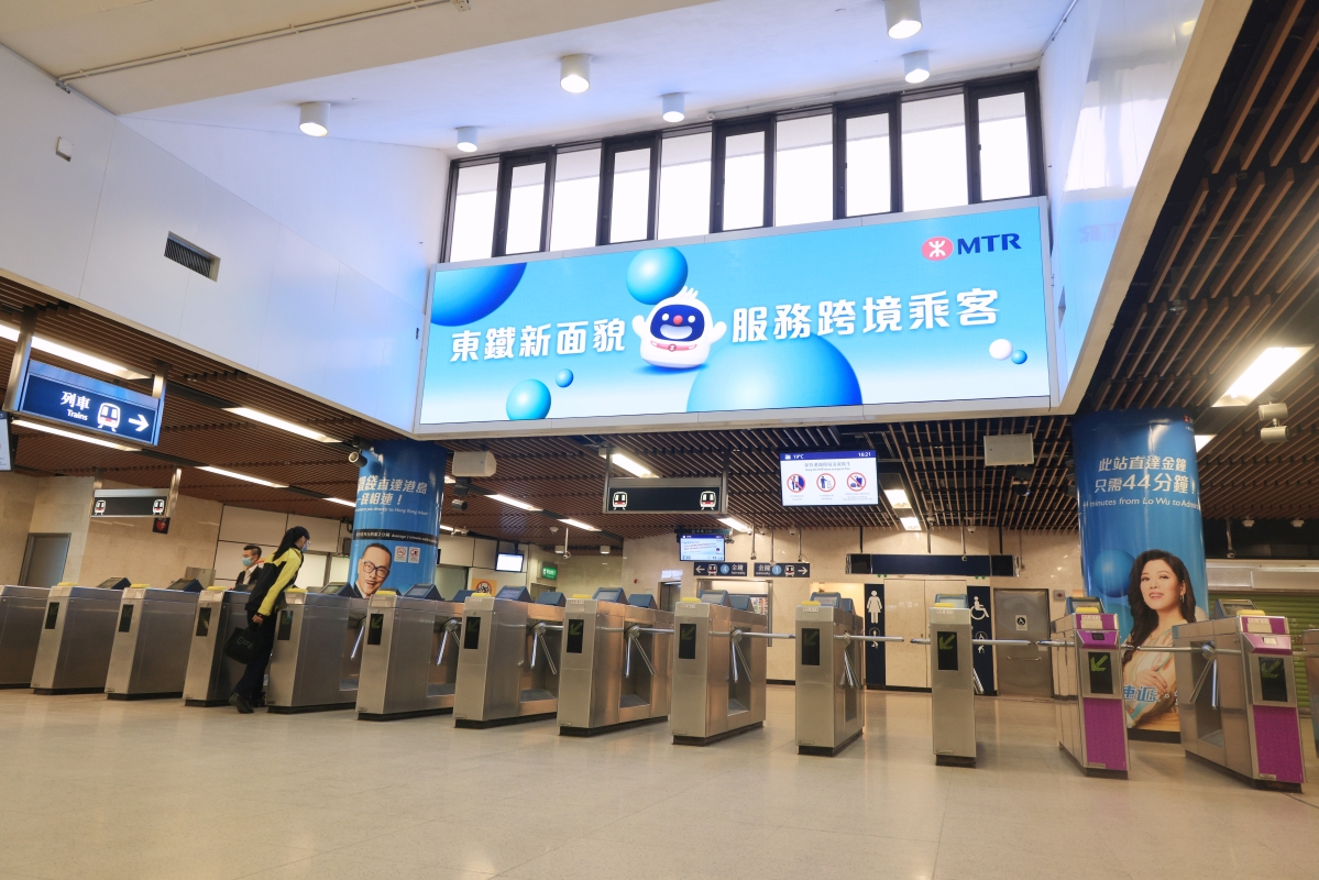 湖站內貼著“以新面貌,服務跨境乘客”的標識